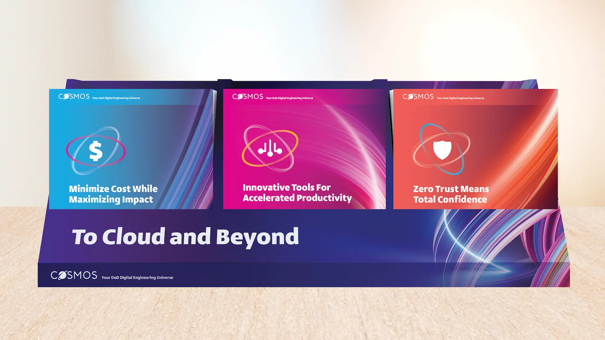 COSMOS had a strong technical foundation, but the product lacked a cohesive identity. The Navy needed a public-facing website, unified design assets, and marketing materials that matched the quality of commercial cloud providers. Internal teams also needed clear UI models, pitch decks, videos, promotional materials, and event collateral to communicate capabilities to leadership, program offices, and external partners.